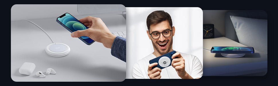 Das kabellose Laden mit Qi funktioniert ohne Kabel. Nachdem Sie das Ladepad angeschlossen haben, legen Sie Ihr Gerät darauf. Ist das nicht einfach?