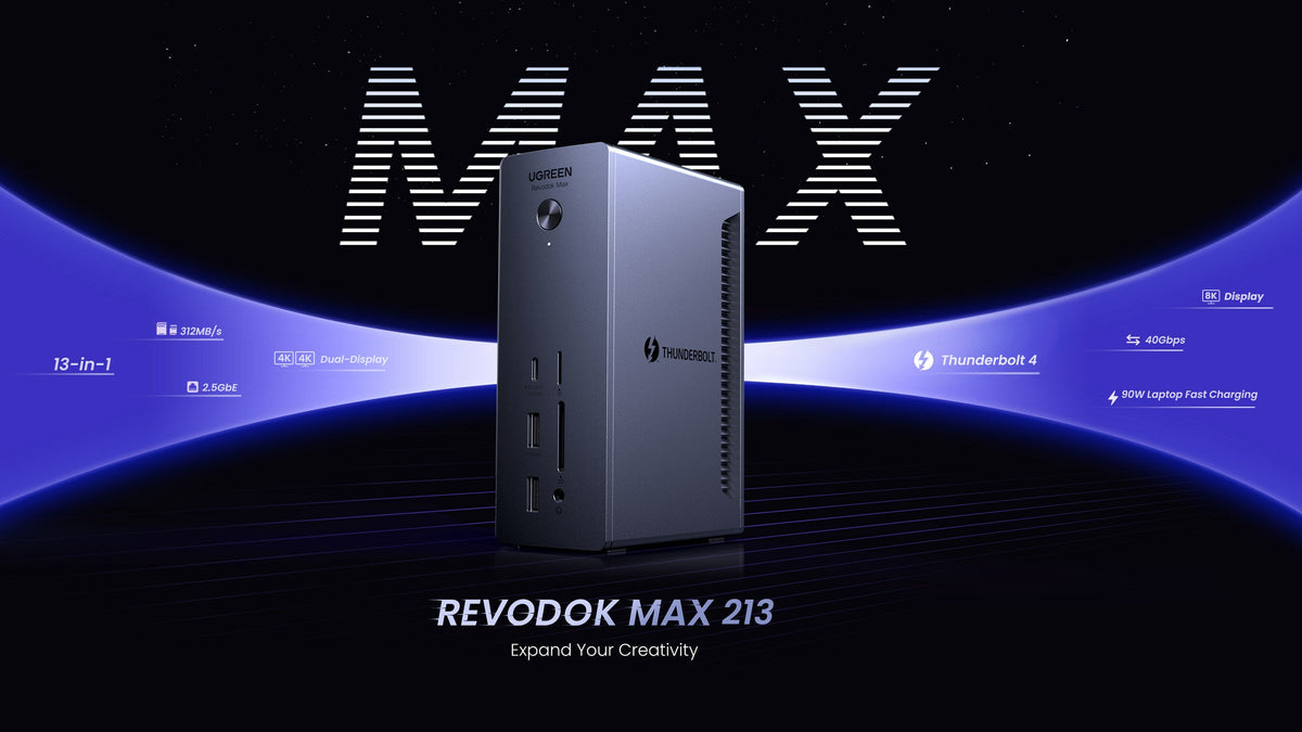 Der Revodok Max 213 ist mit Computern kompatibel, die über Thunderbolt 3-, Thunderbolt 4- und USB-C-Schnittstellen verfügen. Zum Schutz der internen Bauteile verfügt das Gerät über eine erweiterte Wärmeabgabe. Das dreifache Wärmeabgabesystem ist mit einem Aluminiumgehäuse, zweiseitigen thermischen Aluminiumblechen und integriertem wärmeableitendem Silikon für optimale Performance selbst bei langer Nutzung ausgestattet. Der Revodok Max 213 kostet 399,99 € und wird bei Amazon und auf der Website von Ugreen mit einem Rabatt von 20 % angeboten.