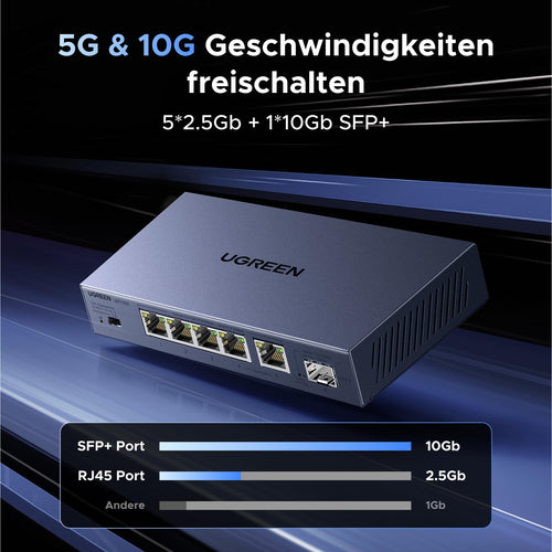 • UGREEN 2,5G-LAN-Switch (5 x 2,5G-Ports, 1 x 10G-SFP+)