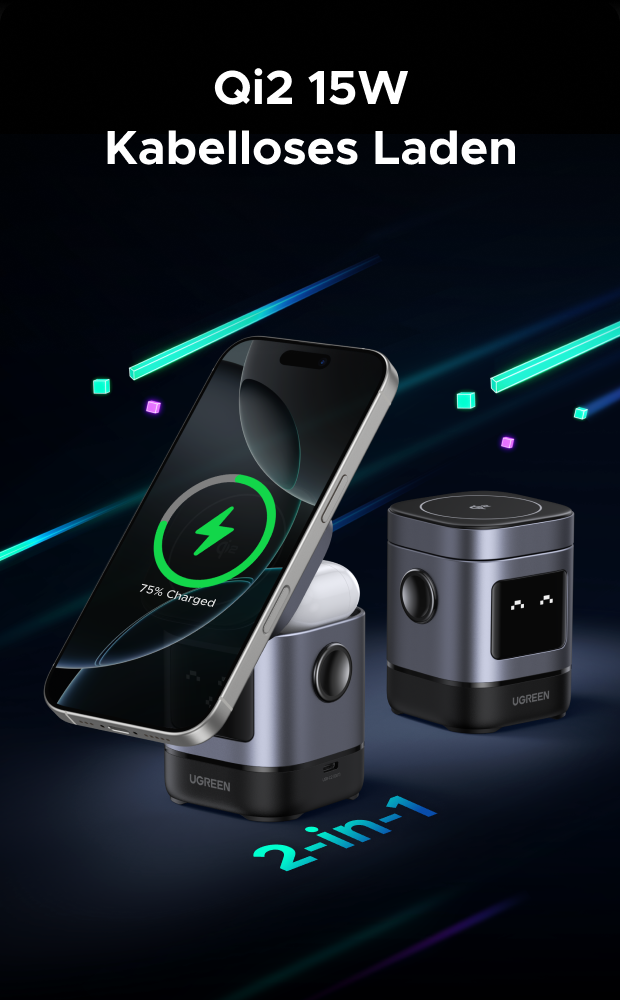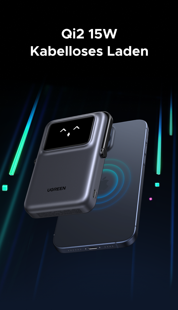 Der TFT-Bildschirm zeigt den Ladezustand in Echtzeit über verschiedene niedliche Emojis an. Viel Spaß beim Entdecken weiterer Emojis mit UGREEN Uno!